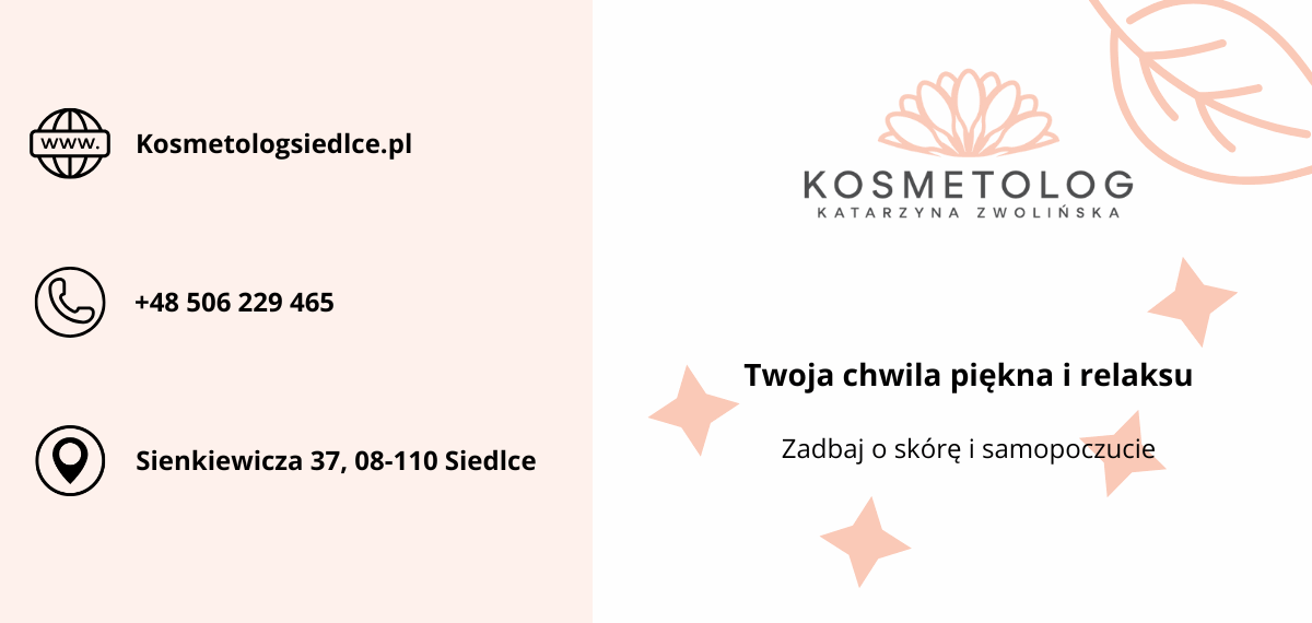 Pielęgnacja skóry nie musi być kolejnym obowiązkiem – może stać się Twoim rytuałem, dzięki któremu poczujesz się piękniej i spokojniej. Jeśli czujesz, że Twoja cera potrzebuje wsparcia, a Ty chwili tylko dla siebie, zapraszam do mojego gabinetu w Siedlcach.