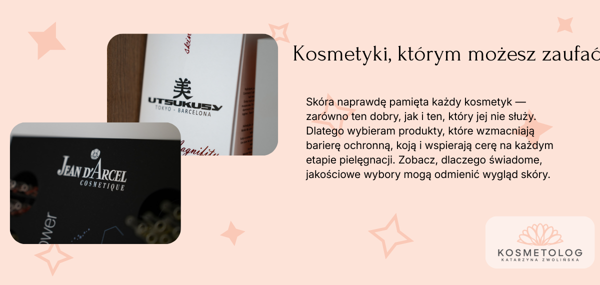 W moim gabinecie w Siedlcach zwracam szczególną uwagę na to, by każdy kosmetyk był starannie dobrany. Z doświadczenia wiem, jak ogromną różnicę potrafi zrobić odpowiednia formuła, a także jak bardzo skóra potrafi odczuć niewłaściwy produkt. Dlatego pracuję wyłącznie na zaufanych, wysokiej jakości markach, które troszczą się o skórę zamiast ją obciążać.